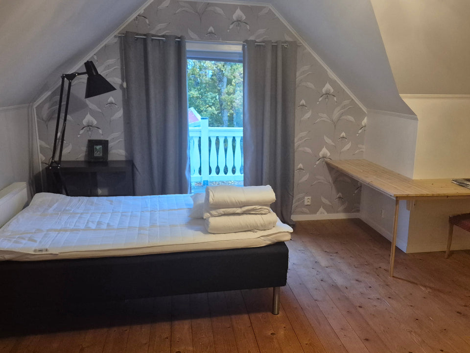 På stora husets ovanvåning hittar du ett stor sovrum med en Queen